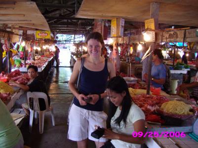 Auf dem Fleischmarkt. Das Fleisch ist natülich ungekühlt, es ist ja nur 30 Grad heiß. An manchen Ständen gibts so Mini-Folienpropeller, die die Fliegen vertreiben sollen.